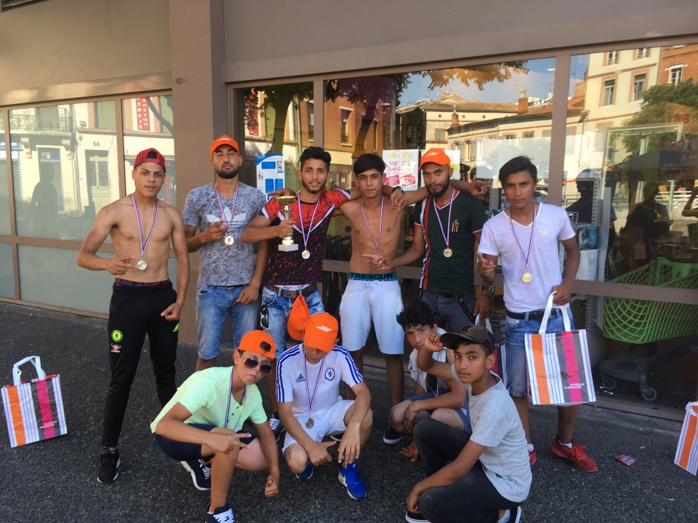 Une équipe de 10 ados (Andrei, Samuel, Andrei, Alin, Andrei, Armando, Luca, Luis, etc.) a rencontré le 11 juin dernier des équipes issues de différents quartiers de Toulouse. L’équipe a disputé cinq matchs. Malgré un début poussif marqué par une défaite, l’équipe coachée par leurs aînés s’est ressaisie et a gagné coup sur coup trois matchs consécutifs. La victoire de la finale leur est passée sous le nez de peu. La fatigue engendrée par le soleil et les matchs précédents s’est faite ressentir en cette fin de journée. Les jeunes étaient tout de même fiers de leur deuxième place, avec une belle coupe et de belles médailles remportées.