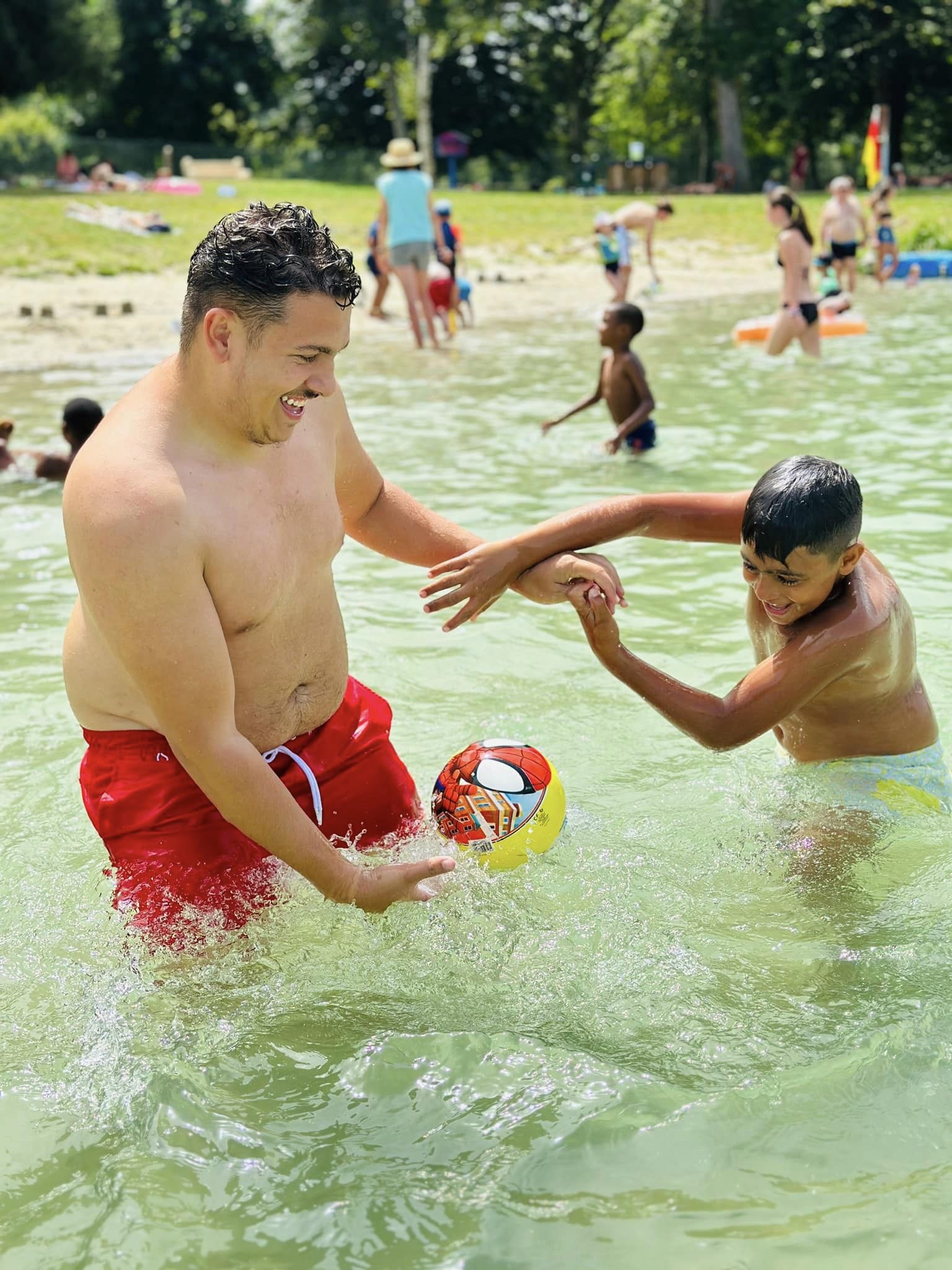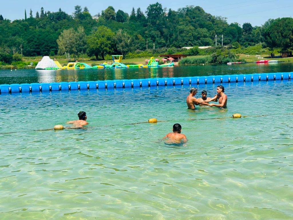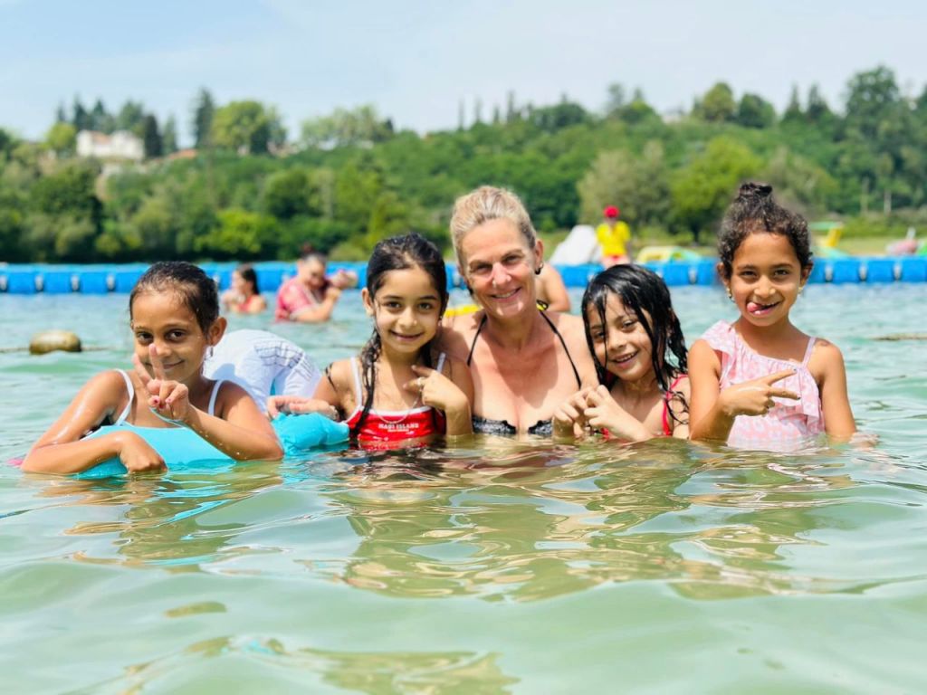 Puis surtout, un séjour-vacances. Et qui dit vacances, dit baignade, lac, détente, jeux. C’était l’esprit tous les après-midis, au lac de Montréjeau. Barboter, nager, se prélasser, plonger, bronzer, faire des châteaux de sable, jouer, chercher des coquillages, faire du pédalo, etc. Petits et grands se sont éclatés, et la seule chose qui a fait sortir les jeunes de l’eau, c’était un soudain orage. La joie se lisait sur tous les visages. Sourires et plaisirs. Encore et encore.