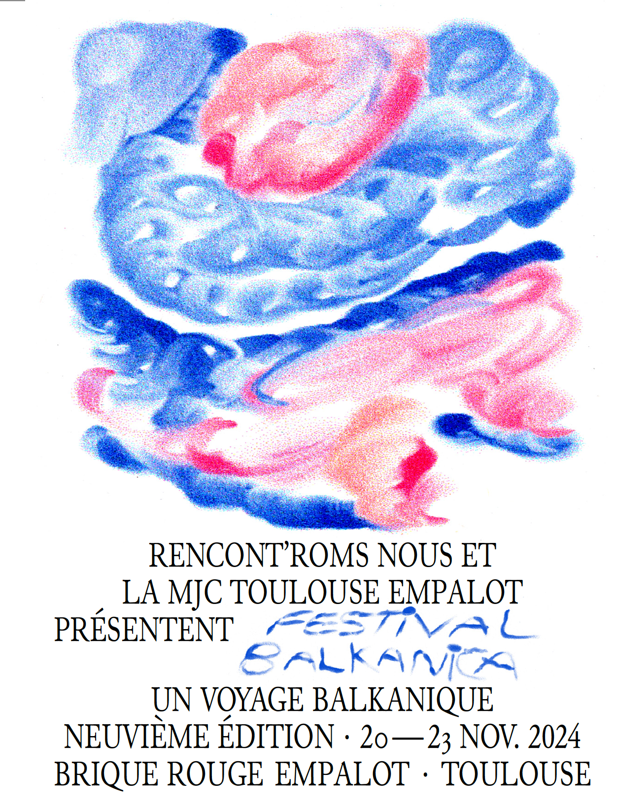 Et c’est déjà reparti pour une neuvième édition ! Le festival Balkanica – un voyage balkanique revient du 20 au 23 novembre, à Empalot, co-organisé avec complicité et fidélité avec nos amis de la MJC Toulouse Empalot. Concerts, spectacle marionnettes, ciné-concerts, atelier danse, initiation langue Rromani, jeux, etc. sont de nouveau programme pour une édition élargie. Une nouvelle édition pleine de nouveautés, surprises, plaisirs, rencontres et bien sûr de fête. Prenez date !