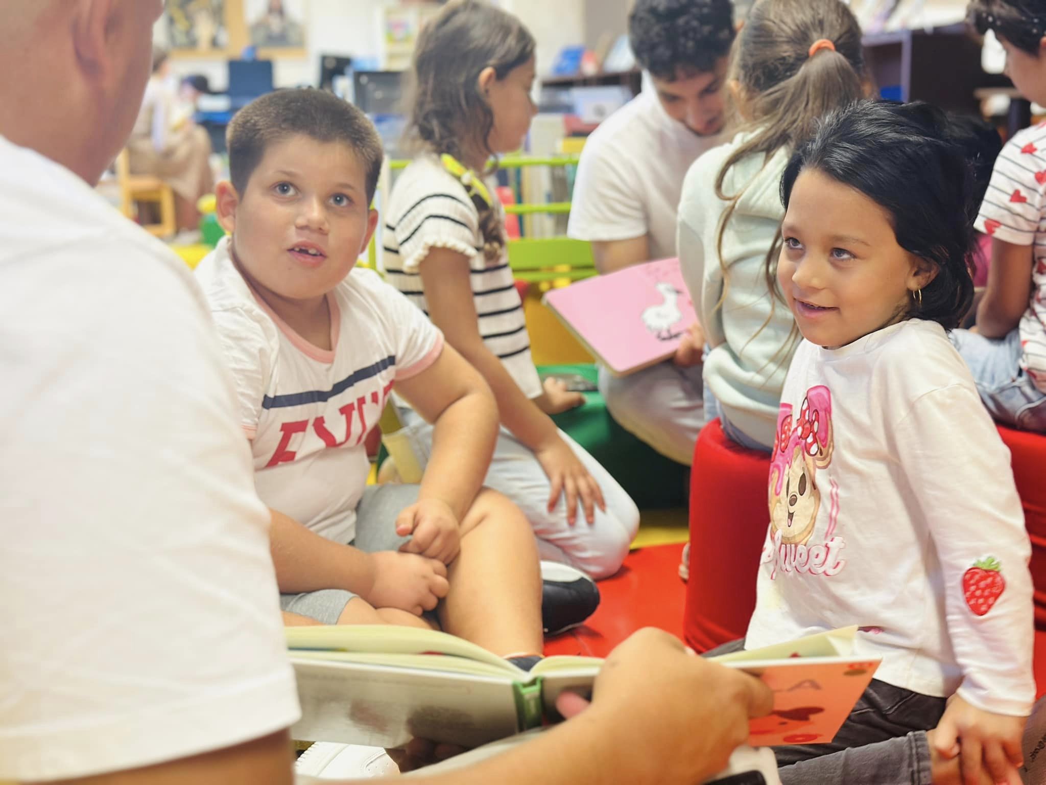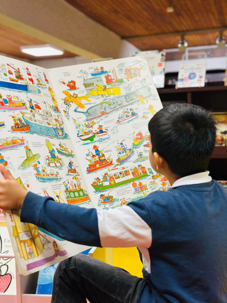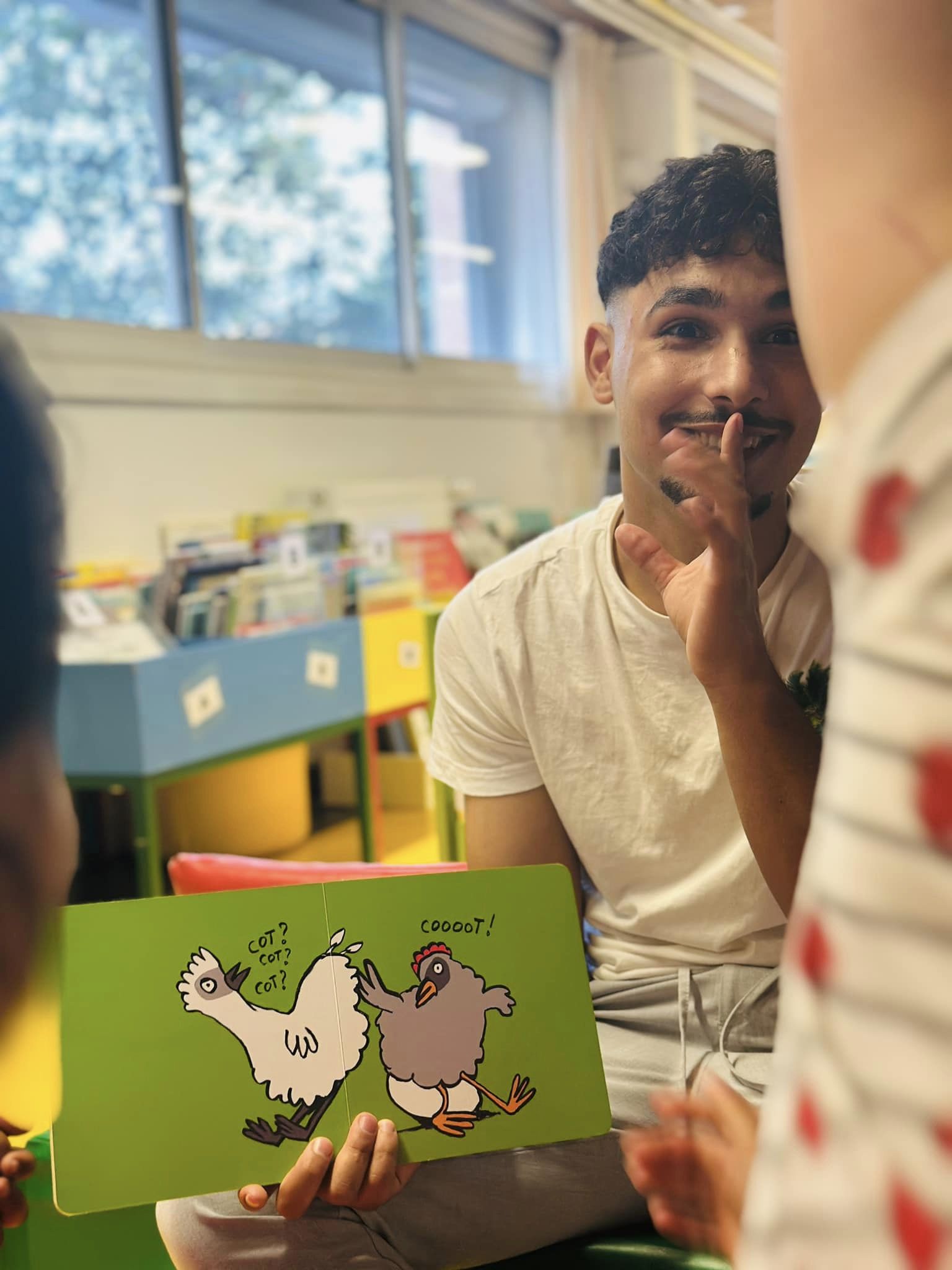 – 15.10.2024 : nouvelle immersion à la bibliothèque Ancely. En petit comité, mais cela permet de travailler et renforcer la lecture d’histoires de façon personnalisée ! Lire, et sourire devant les livres ! Que c’est beau !
