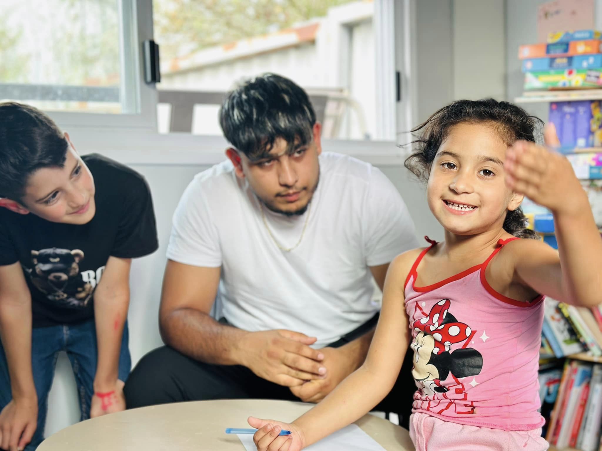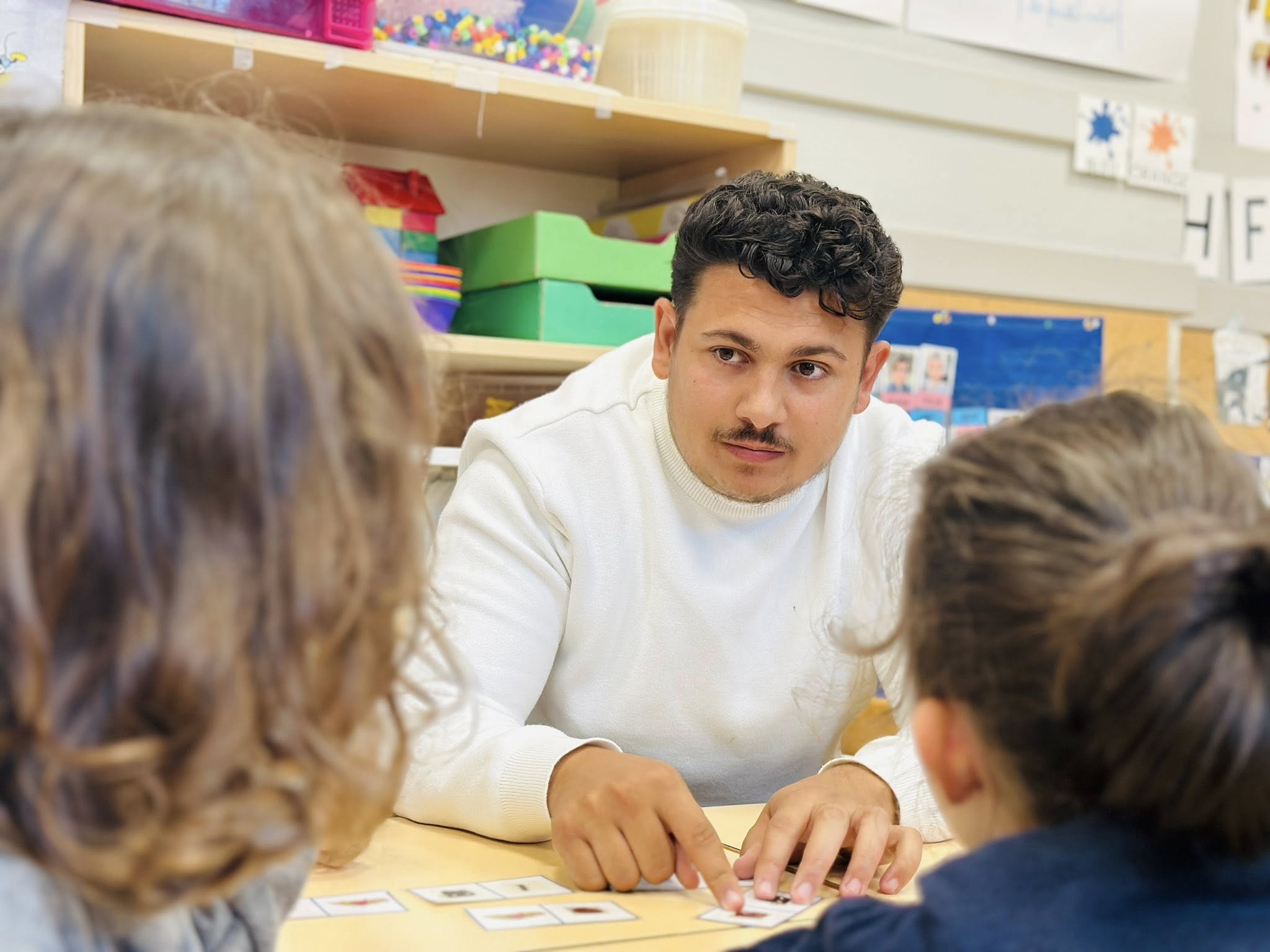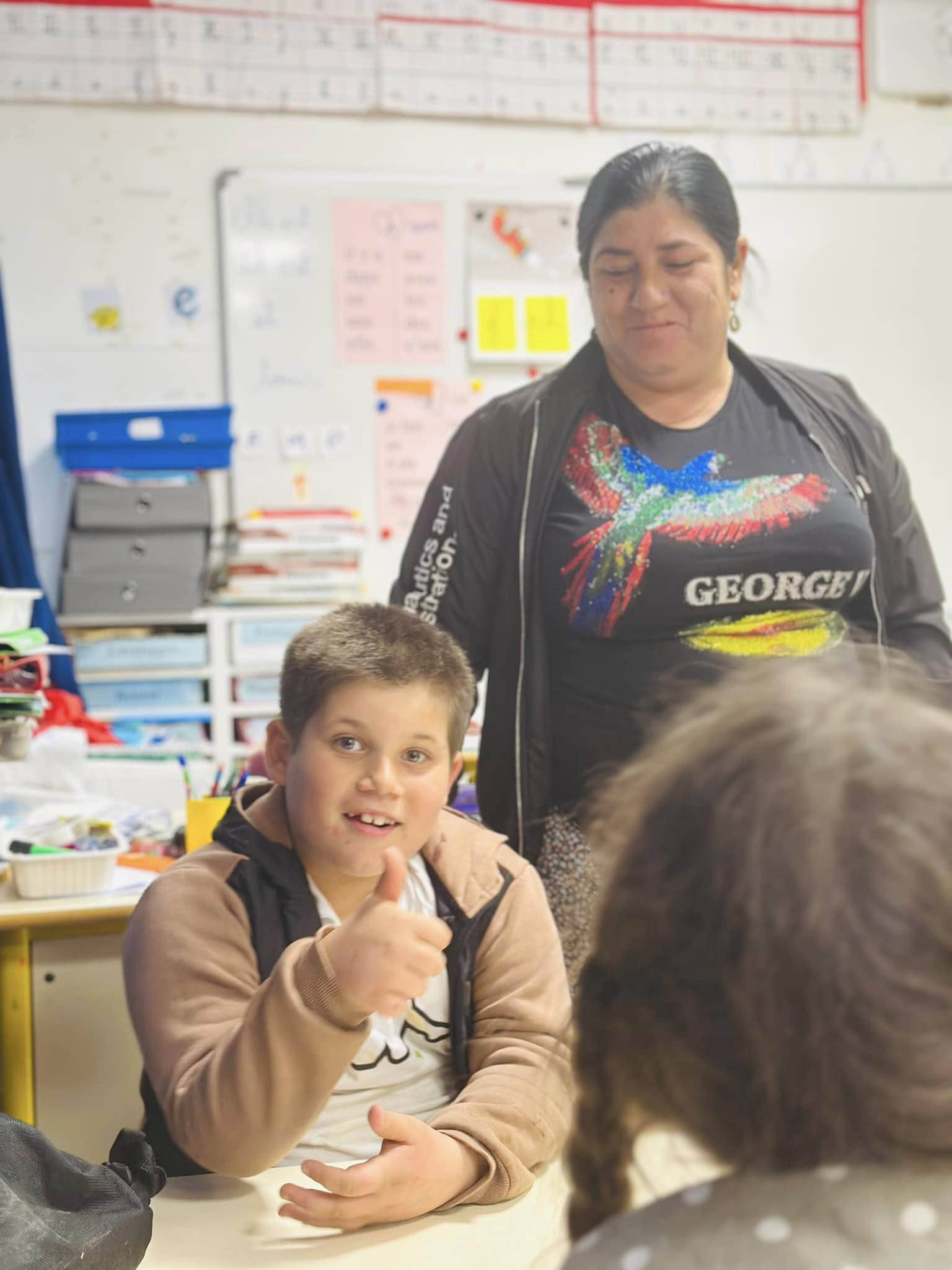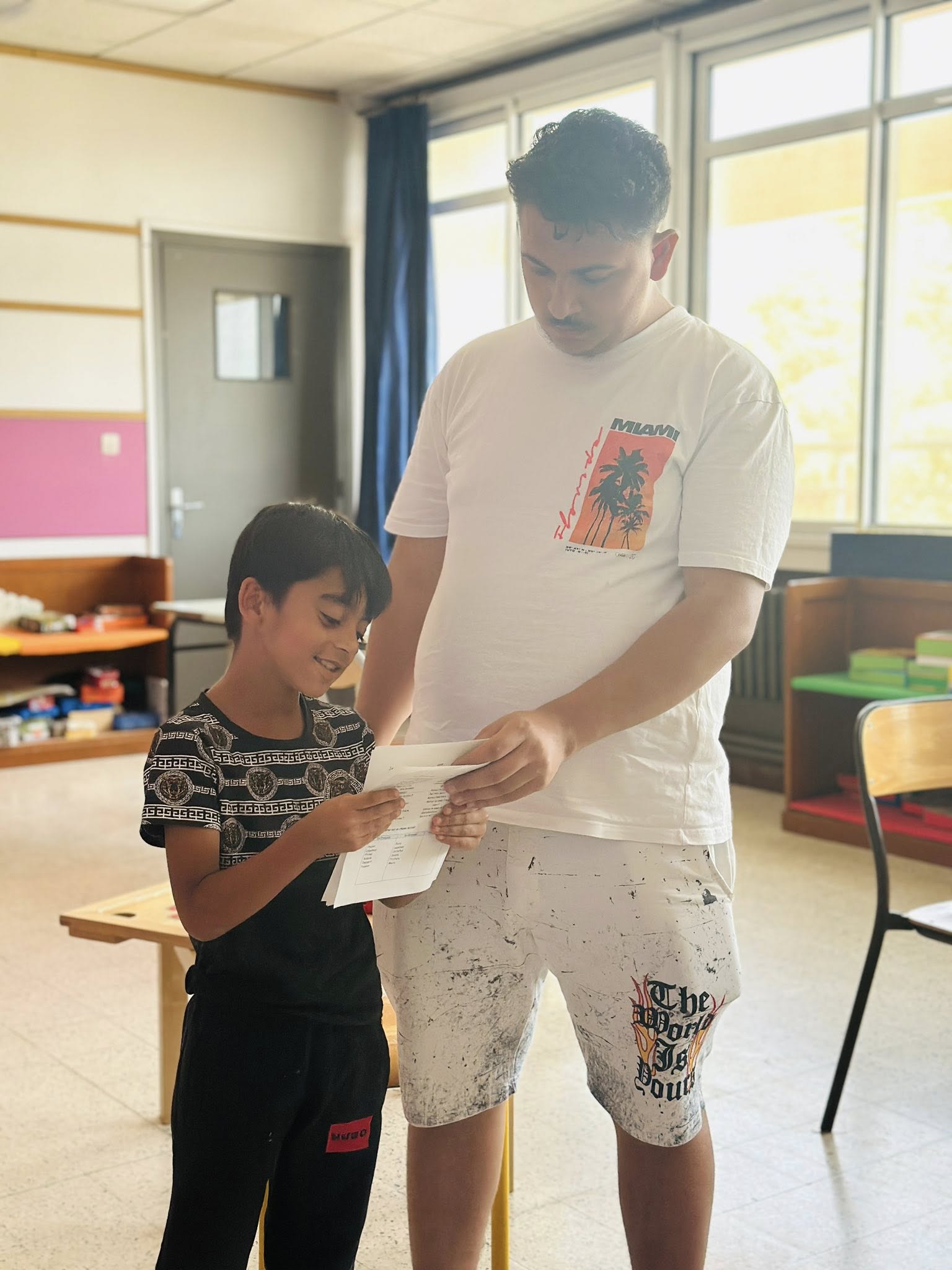 Antonio, puis Florin, étaient présent en début de matinée dans la classe, aux côtés des élèves du terrain nouvellement arrivés à l’école, pour les accompagner, aider, rassurer, être aux côtés des enseignantes.