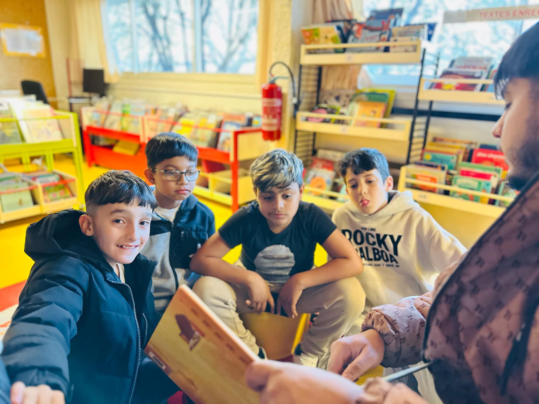 – 26.11.2024 : un petit problème électrique sur le terrain empêche la tenue (provisoire) du soutien scolaire dans l’algeco, mais c’était l’immersion mensuelle à la bibliothèque Ancely, pour de nouvelles histoires. Des livres et des couleurs !