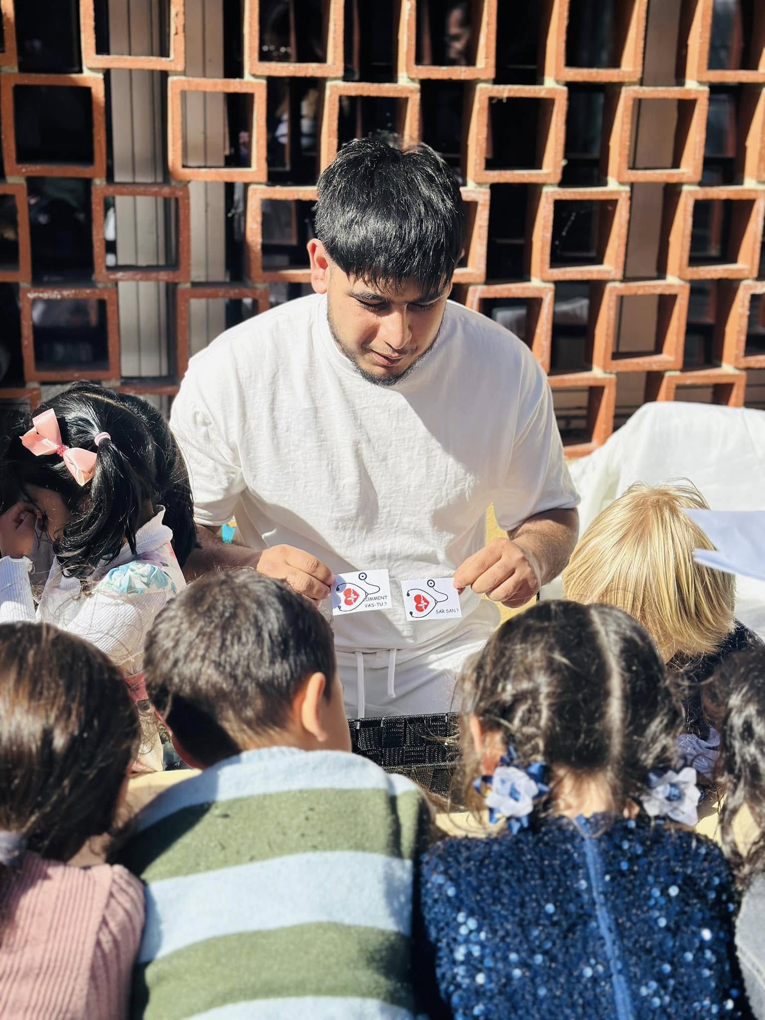 – 01.10.2024 : soutien scolaire sur le terrain : on trace des lignes, on écrit, on lit, on apprend des mots. À chacun son exercice. La joie d’apprendre.