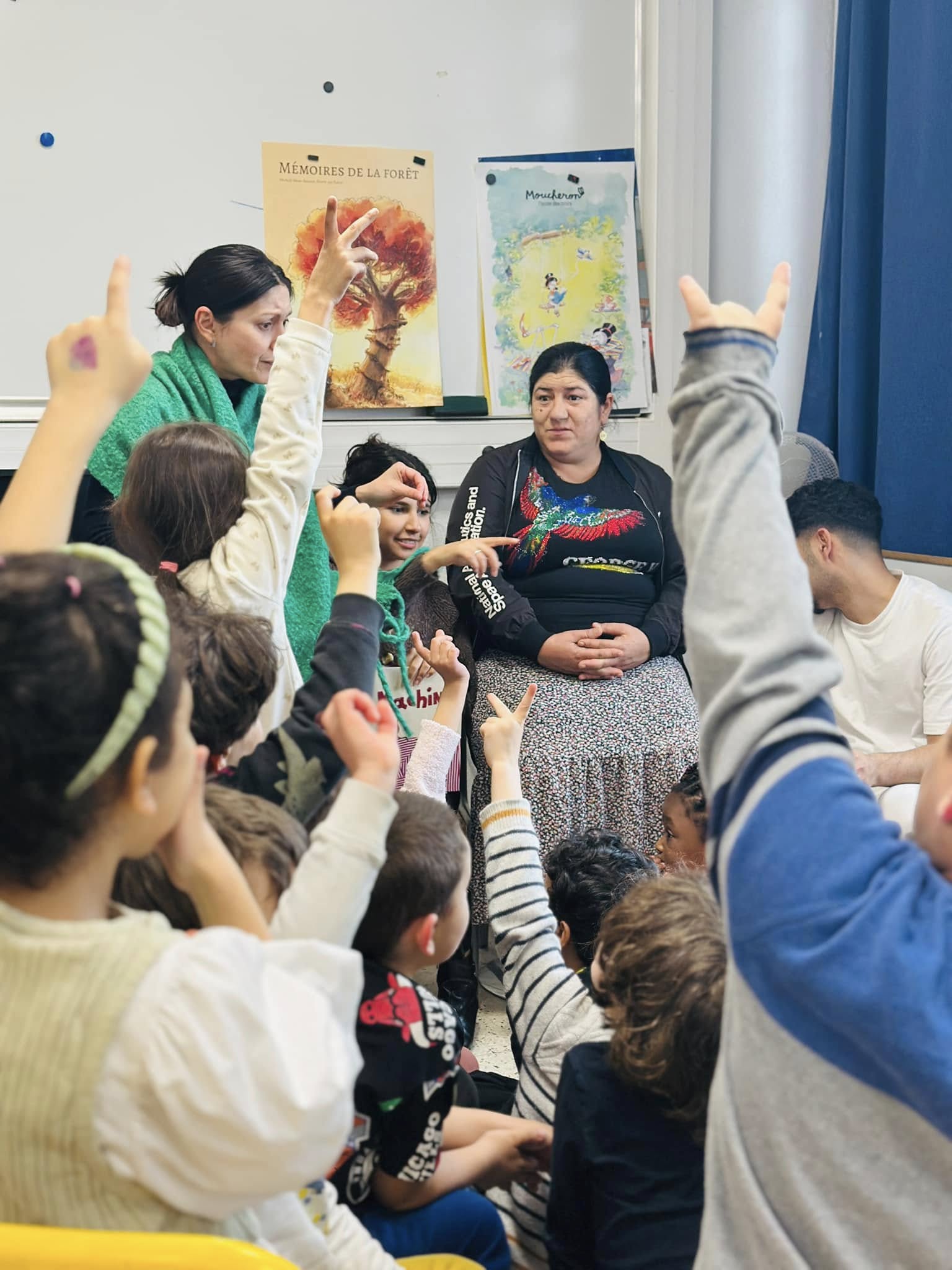 Ça parle tsigane, italien, espagnol, créole réunionnais, anglais, portugais, arabe, géorgien, avec de nombreux parents présents. Les enfants sont ravis.